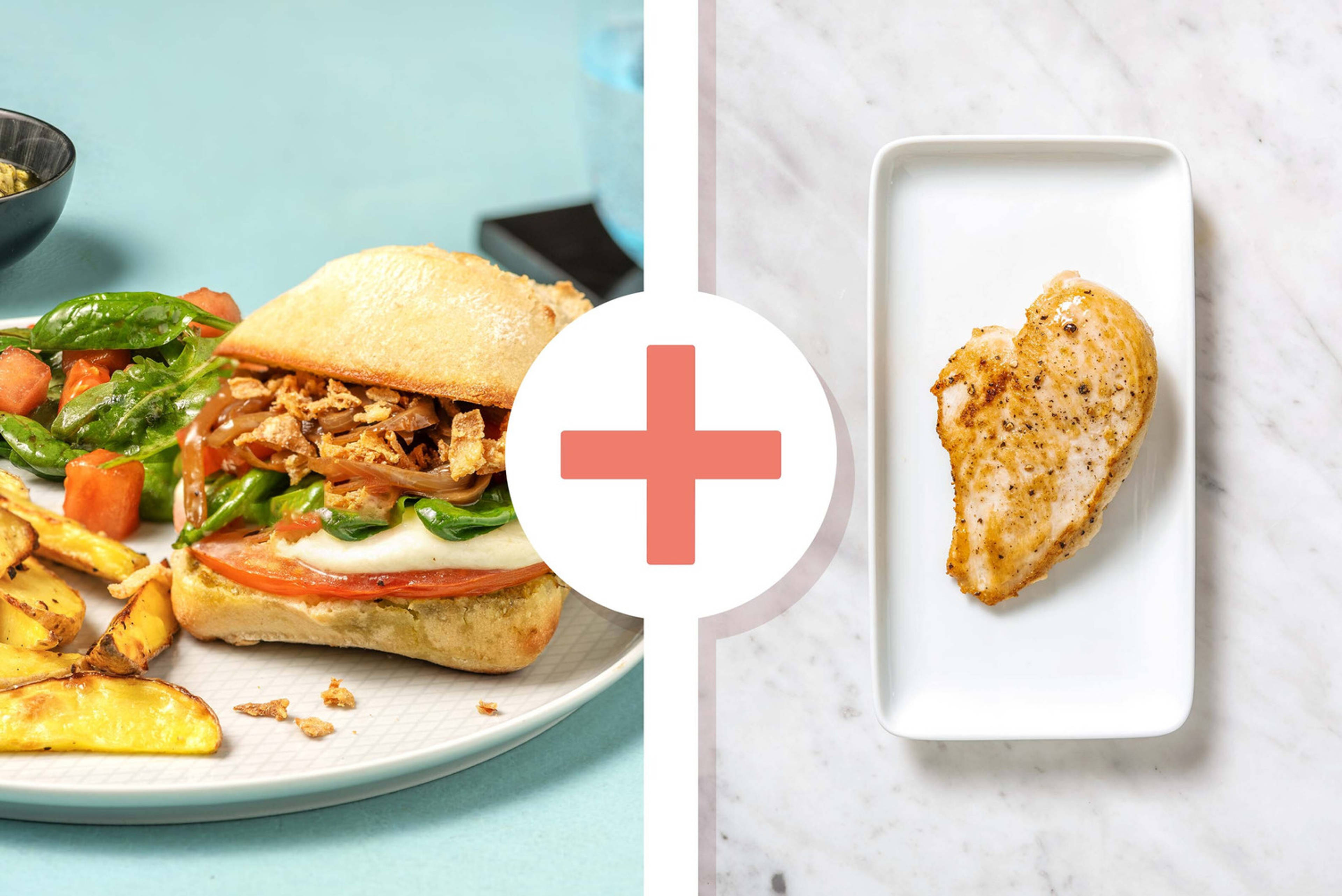 Before starting, preheat the oven to 425°F and wash and dry all produce.Heat a small pot over low heat. Add 2 tbsp butter (dbl for 4 ppl), then stir to melt, 30 secs. Set aside. Stir together blueberry jam and half the balsamic glaze in a small bowl. Cut the brie in half. (NOTE: You should have 4 pieces for 4 ppl.)