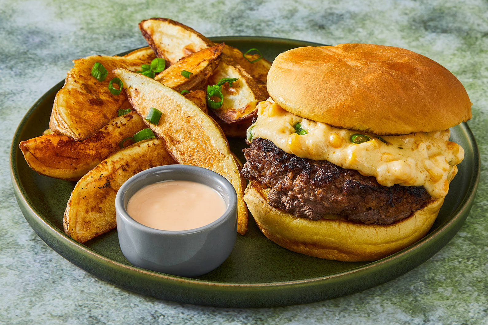 Voilà un repas réconfortant comme à la maison, prêt à manger : il suffit de le réchauffer quelques minutes. Les fleurons de brocoli sont nappés d’une sauce au cheddar avec piments verts. Sur le dessus, du bœuf haché qui a mijoté dans une riche sauce tomate avec des oignons, de l’ail et des épices, garni de cheddar râpé. Les légumes en accompagnement sont des courgettes et des poivrons rouges rôtis avec de l’ail, du gochugaru (des flocons de piments coréens) et des piments guajillo qui ajoutent du piquant. Ingrédients: Brocoli • Bœuf haché • Courgette • Poivron rouge • Fromage cheddar (lait pasteurisé, substances laitières modifiées, sel, culture bactérienne, chlorure de calcium, enzyme microbien, rocou, cellulose, natamycine) • Fromage à la crème (substances laitières, culture bactérienne, sel, gomme de guar, gomme de caroube) • Oignon espagnol • Crème épaisse (lait) • Lait 2% • Tomates concentrées (tomates fraîches mûries sur pied, sel, acide citrique d'origine naturelle) • Piments verts (piments verts, sel, acide citrique, chlorure de calcium) • Huile d'olive • Eau • Bouillon brun (bouillon de veau, carotte, oignon, pâte de tomate, céleri) • Oignons verts • Fromage parmesan (lait, substances laitières modifiées, culture bactérienne, sel, lipase, chlorure de calcium, présure et/ou enzyme microbien, cellulose en poudre, arôme de parmesan (naturel)) • Sel de mer • Ail en poudre • Oignon en poudre • Poivre noir • Ail rôti en poudre • Moutarde moulue • Gochugaru • Piment guajillo moulu • Flocons de piment rouge concassés.