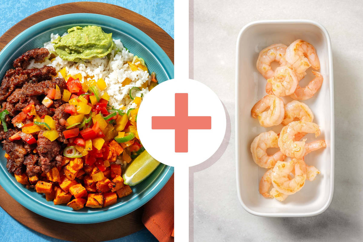 Préparez une soirée burrito sans les dégâts! Ce plat satisfaisant est composé de patates douces copieuses et de protéines à base de plantes, le tout servi sur un lit de riz aux oignons et aux poivrons. Pour couronner le tout, combinez deux garnitures : la crème à la lime et la salsa maison!