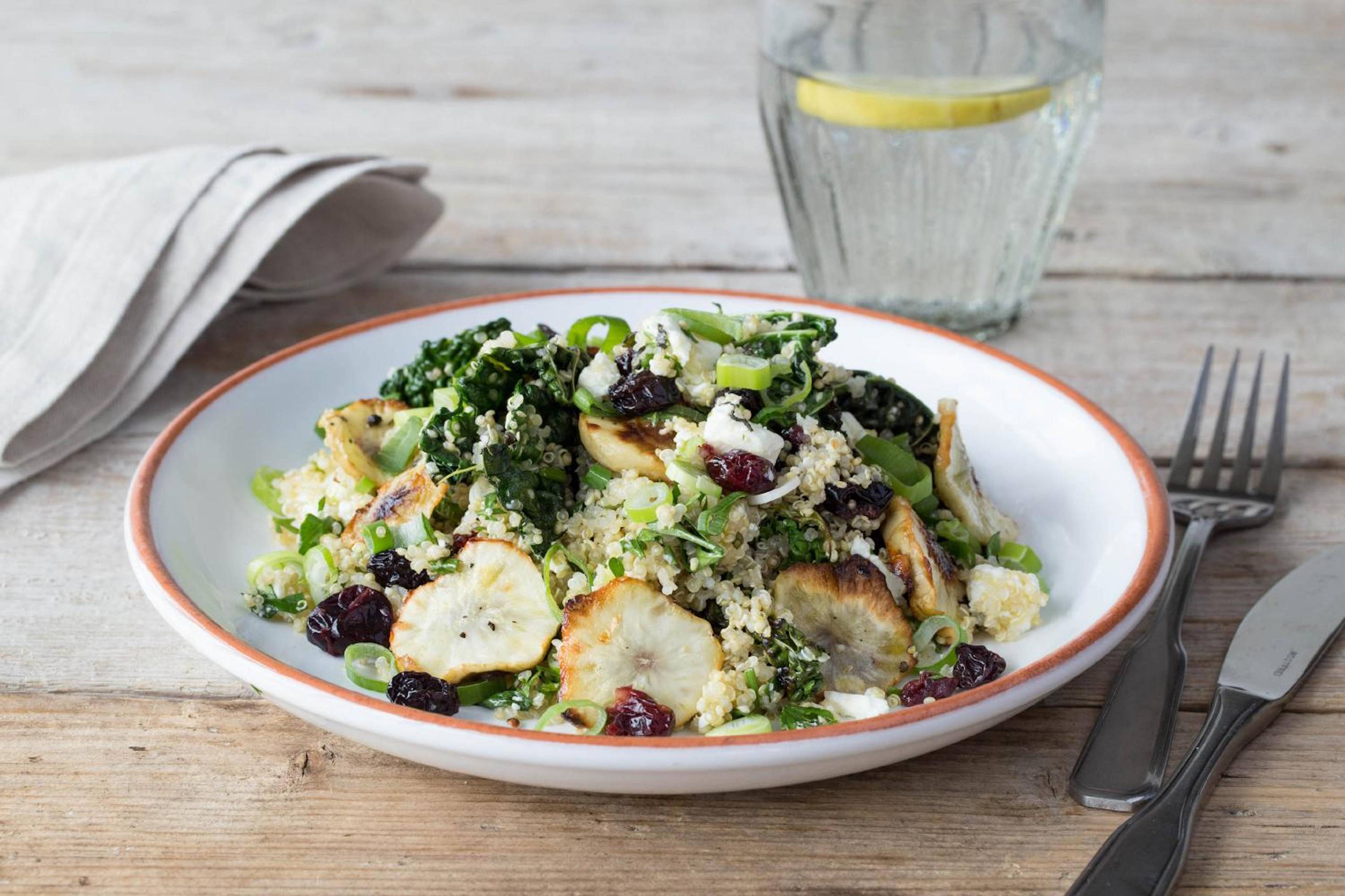 1/4-inch rounds. Halve grapes. Thinly slice mint. Add ricotta, cream cheese, orange zest, 1/2 tsp sugar and half the mint to a large bowl. Season with salt and pepper, then stir to combine.