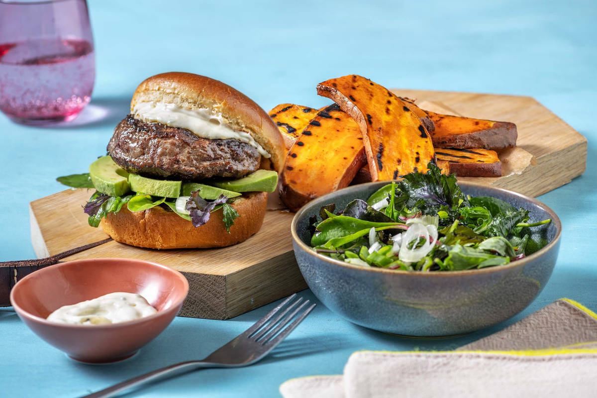 Les bienfaits de la Californie ensoleillée dans un burger! L'avocat riche est un remplaçant nourrissant au fromage! Vibrant, amusant et facile pour les grillades de la semaine.