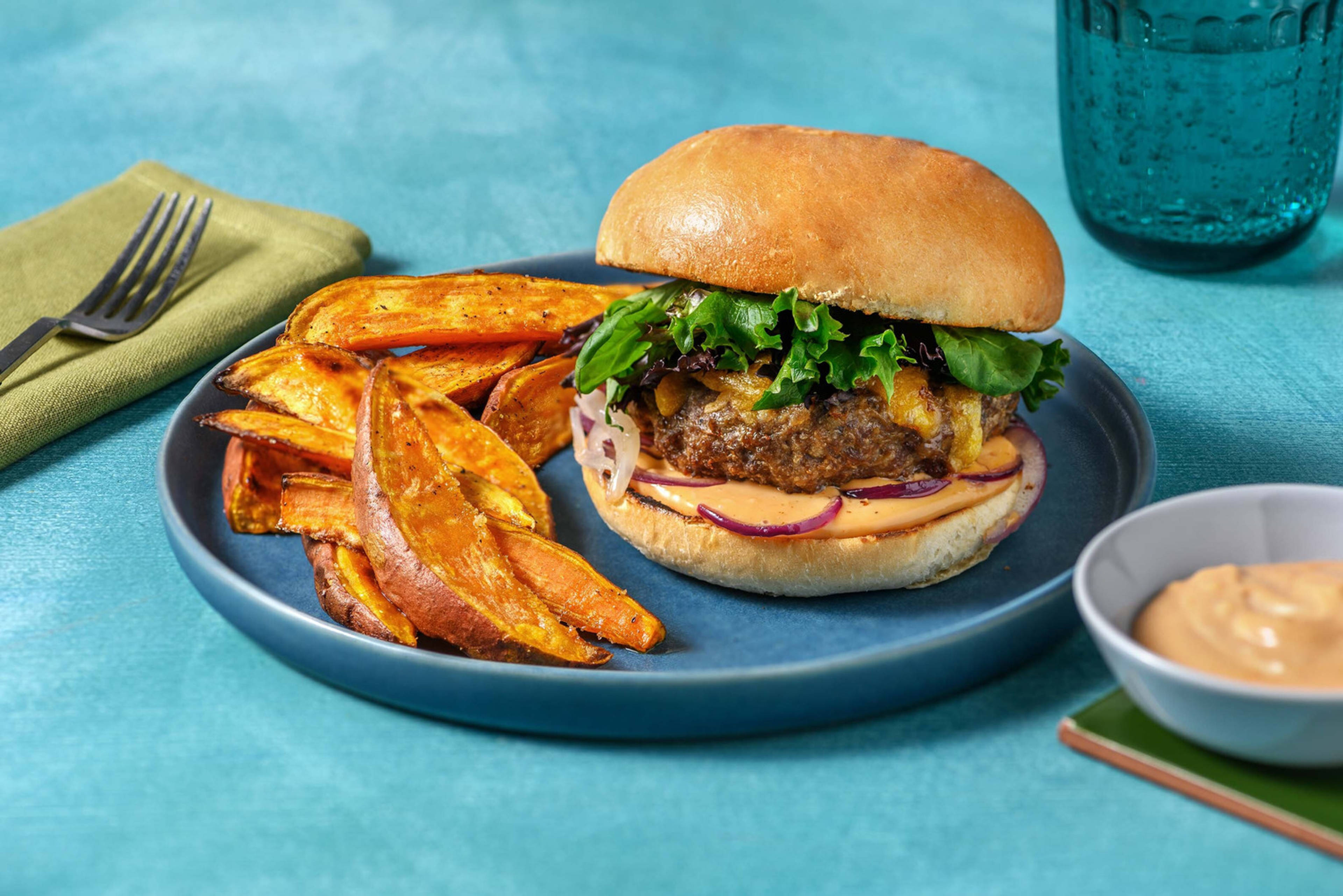 If you've opted to get beef, cook in the same way the recipe instructs you to cook pork.**