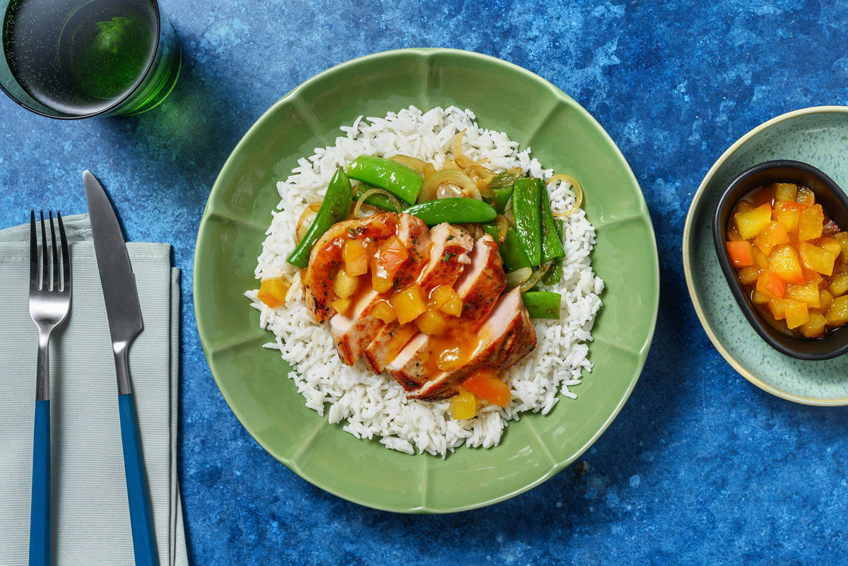 Le mariage du porc et des fruits est tout aussi bon que celui des pois et des carottes! En plus de rehausser le goût du porc, la sauce à l’abricot et à la pomme apporte une délicieuse touche de fraîcheur. Le tout est servi avec du riz au beurre et des pois croquants.