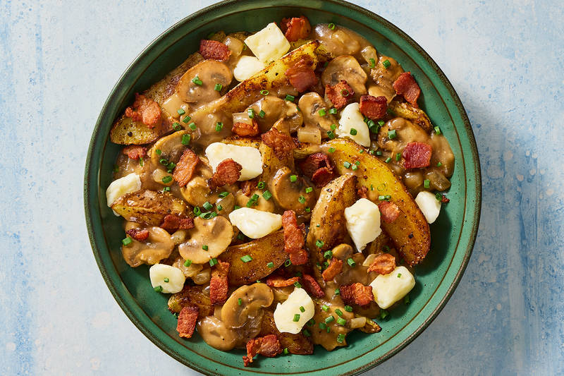 Transfer to a serving bowl, then top with bacon. Cover to keep warm.
