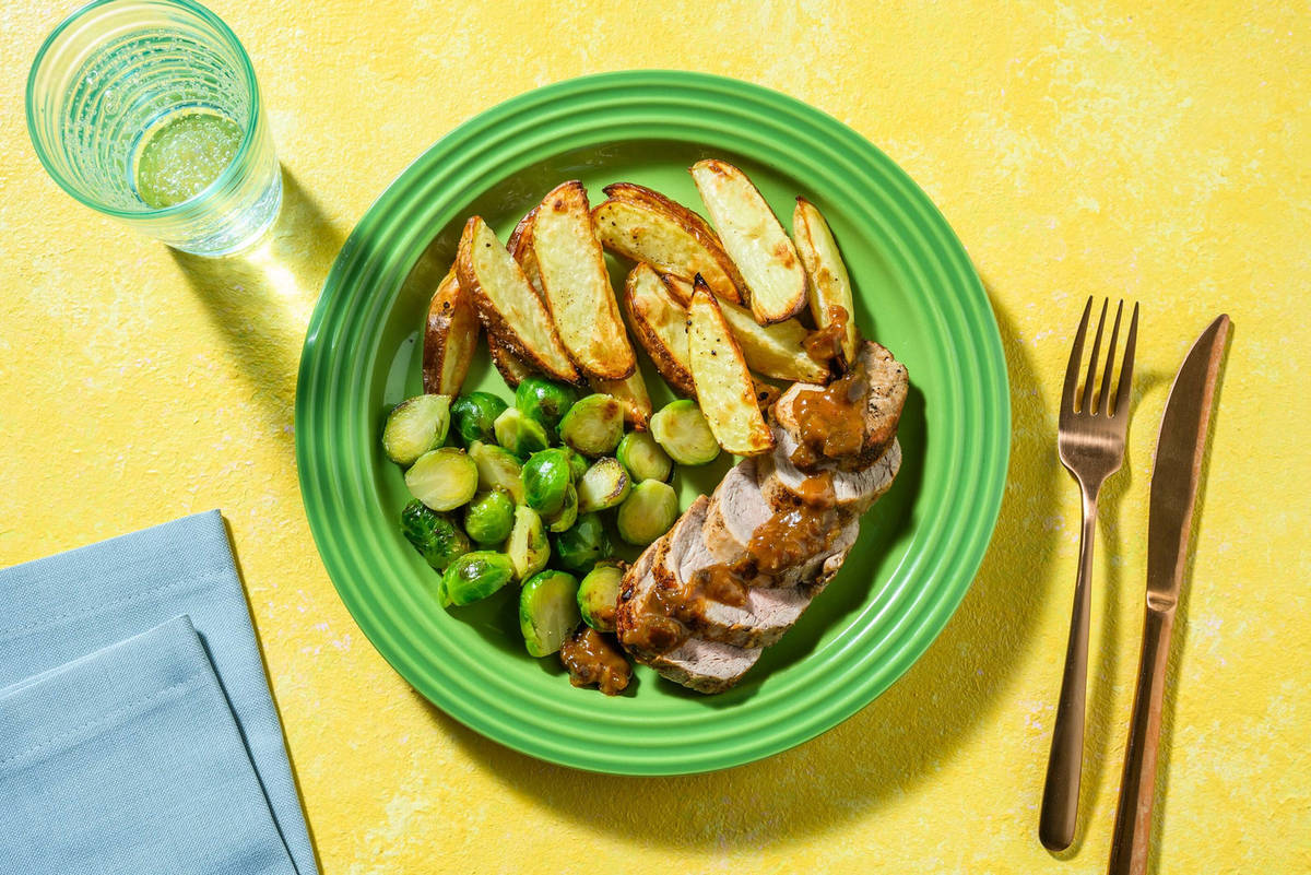 Le porc et le glaçage sucré forment un duo inséparable. Ce soir, faites poêler le filet de porc juteux, enveloppé dans une irrésistible sauce aux figues et au sirop d’érable, puis terminez la cuisson au four. Les pommes de terre rôties à l’ail et les choux de Bruxelles au beurre font de ce plat un chef-d’œuvre magnifique, avec un goût à vous combler de bonheur!