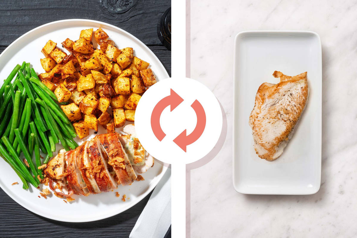 Tonight, enjoy a fun spin on a pub favourite in the comfort of your home! A creamy, cheesy jalapeño mixture is stuffed into chicken breasts, which are then wrapped in bacon to create a total show-stopper. Crispy green beans and BBQ spice-dusted potatoes make for satisfying sides.