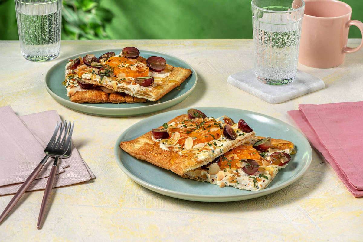 Puff pastry is topped with creamy ricotta, fresh mint and a drizzle of honey for a show-stopping brunch tart! Gather around the table, pour the OJ and get stuck in!