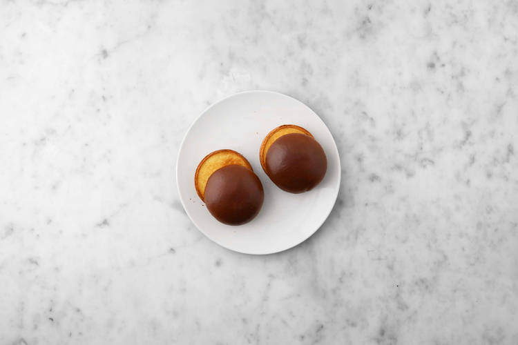 Halve, then place buns in the toaster until lightly golden-brown, 1-2 min.