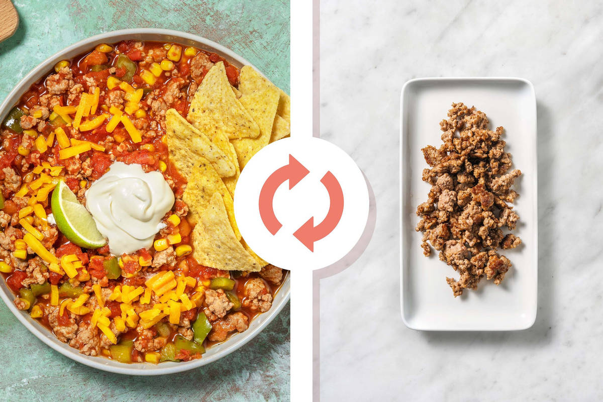 Packed with hearty and delicious turkey and veggies, this Mexican-style stew is the perfect remedy to a long work week. Crushed tortilla chips and a dollop of sour cream offer a pop of flavour to top it all off.