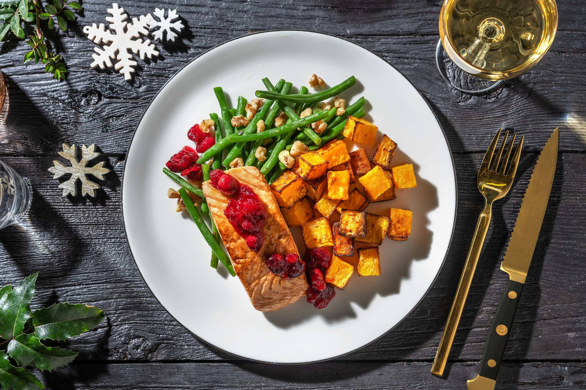 Celebrate the holidays with juicy fresh salmon filets, tender sweet roasted squash and a savoury tart cranberry chutney! It's a simple, elegant meal that is just as beautiful as it is satisfying.
