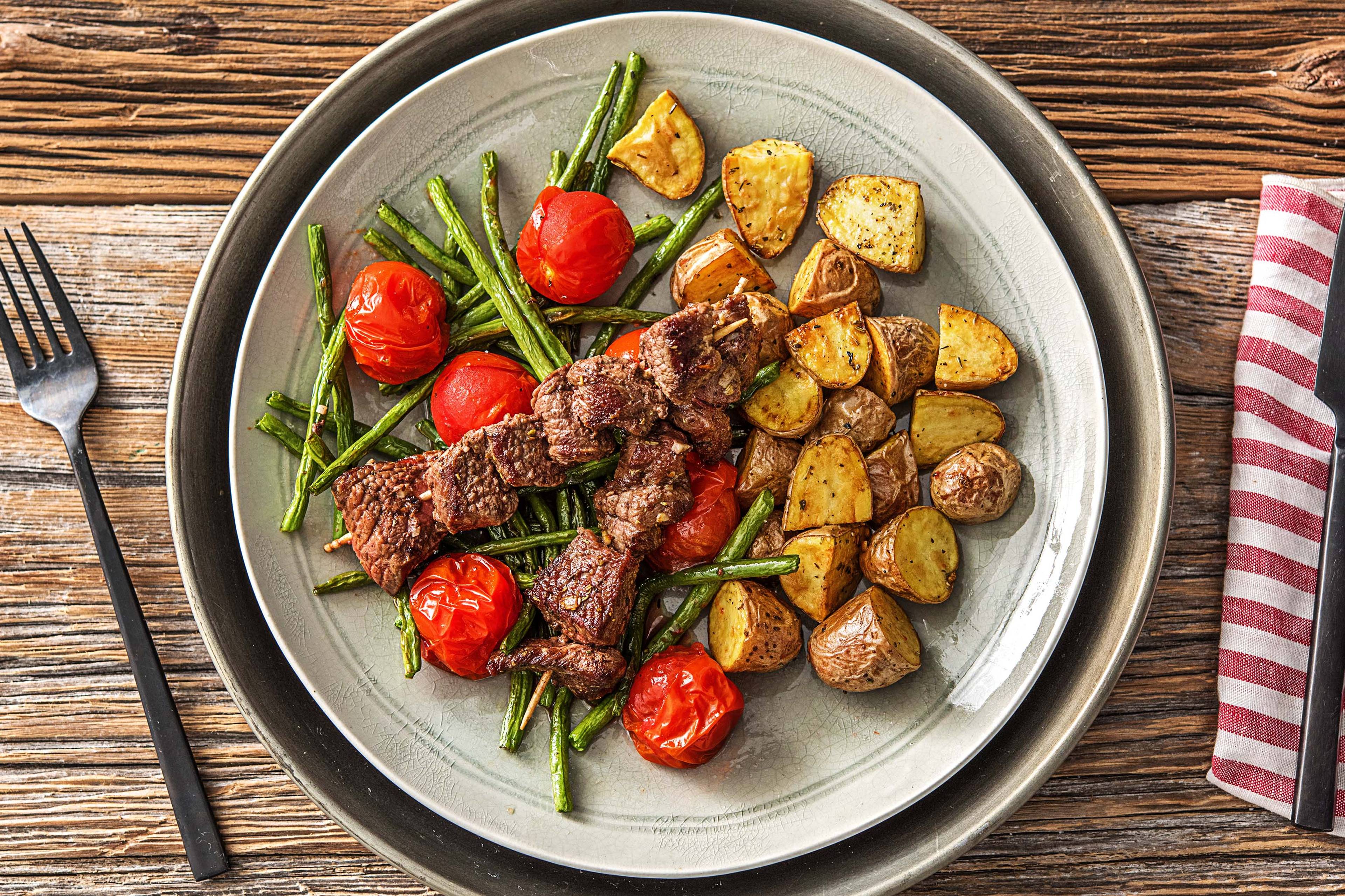 Avant de commencer, préchauffer le four à 230 °C (450 °F). Laver et sécher tous les fruits et légumes. Couper les pommes de terre en deux sur la longueur, puis en tranches de 0,5 cm (1⁄4po). Sur une plaque à cuisson, arroser les pommes de terre de 1 c. à soupe d’huile. (REMARQUE : Pour 4 pers., utiliser 2 plaques à cuisson avec 1 c. à soupe d’huile chacune.) Saupoudrer de 1⁄2 c. à thé de sel d’ail et de 1 1⁄2 c. à thé d’assaisonnement italien (doubler les qtés pour 4 pers.), poivrer, puis remuer pour enrober. Rôtir dans le bas du four de 22 à 24 min, en retournant à mi-cuisson, jusqu’à ce que les pommes de terre soient dorées. (REMARQUE : Pour 4 pers., rôtir dans le bas et le haut du four, en interchangeant les plaques à mi-cuisson.)