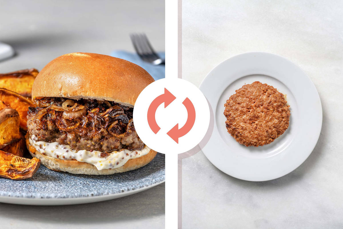 Our dinnertime creation is the Retro Burger. Caramelized onions, cheddar cheese, flavourful buns and veggie patties. This burger comes together quickly and will make your weeknights delicious!