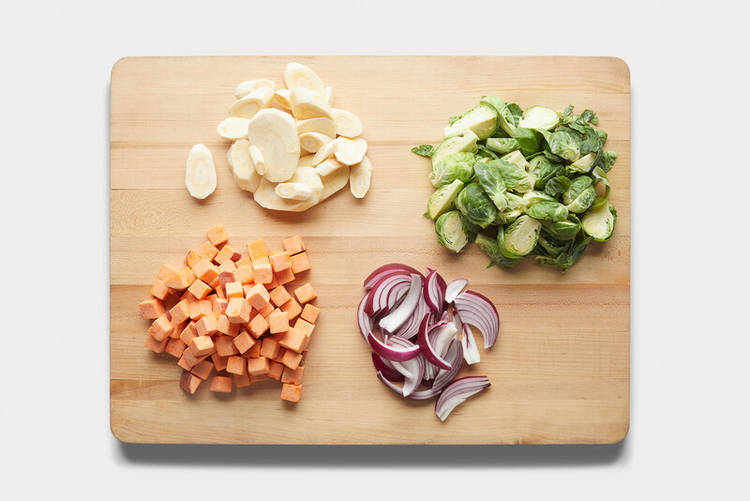 Simple roasted vegetables are the perfect dish to dress up for the holidays. Here, we are making a zesty, slightly sweet and delicious vinaigrette to dress roasted Brussels sprouts, parsnips and sweet potatoes. It's the perfect side to add a little wow to your holiday plate.