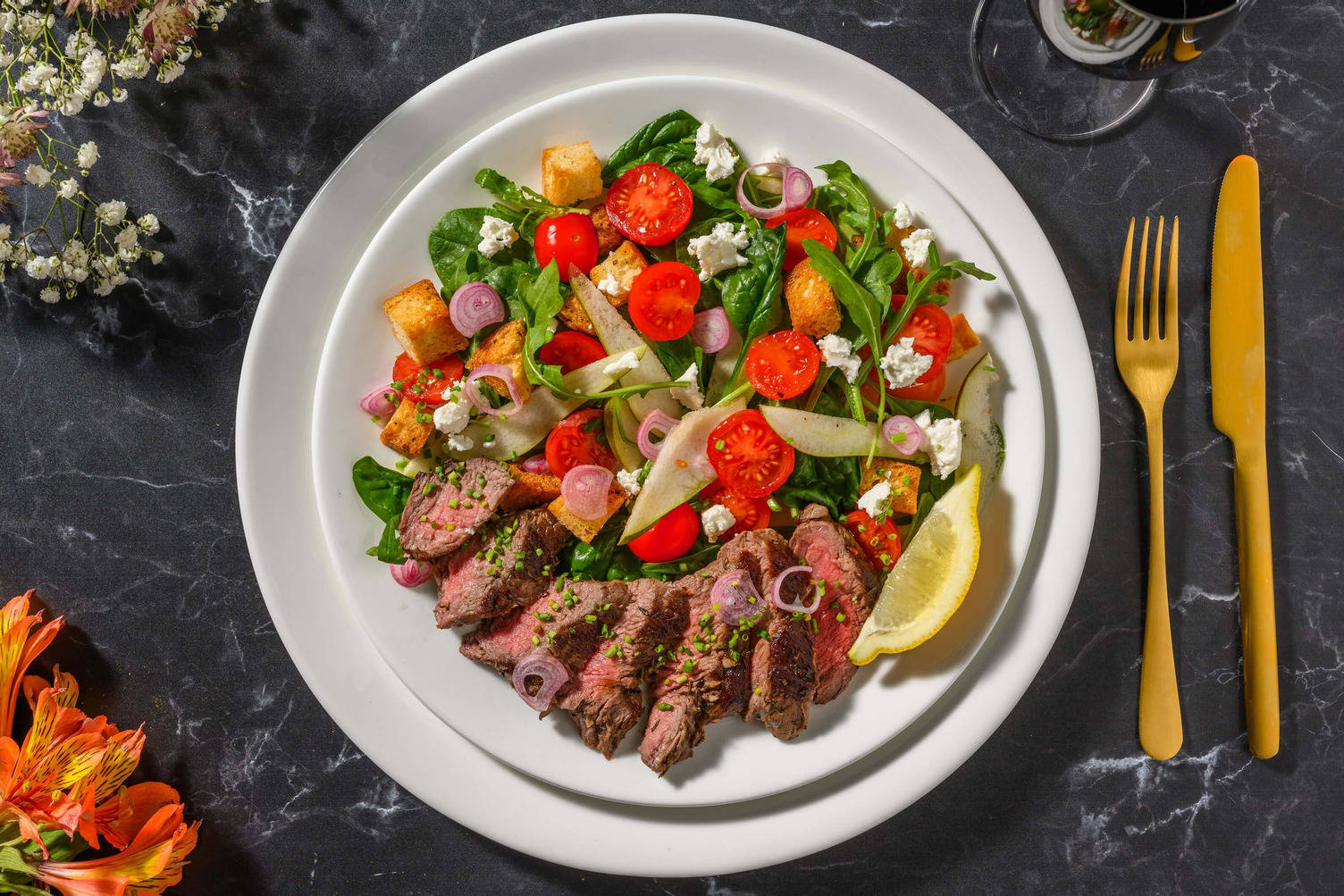 Répartir la salade dans les assiettes. Garnir de canard et d’asperges. Parsemer de fromage de chèvre et de noix de Grenoble. Arroser le canard du reste de la vinaigrette.