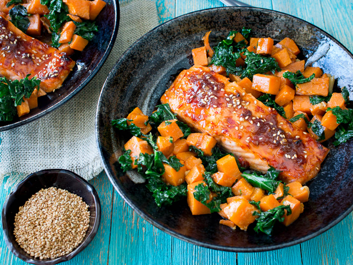 Well rounded and delicious is what this recipe is all about. Sweet and smoky BBQ sauce glazed salmon piled high a top a healthy serving of veggies that include sweet potato, green beans and corn. An indulgent drizzle of BBQ mayo provide that creamy sauciness you'll want with every bite.