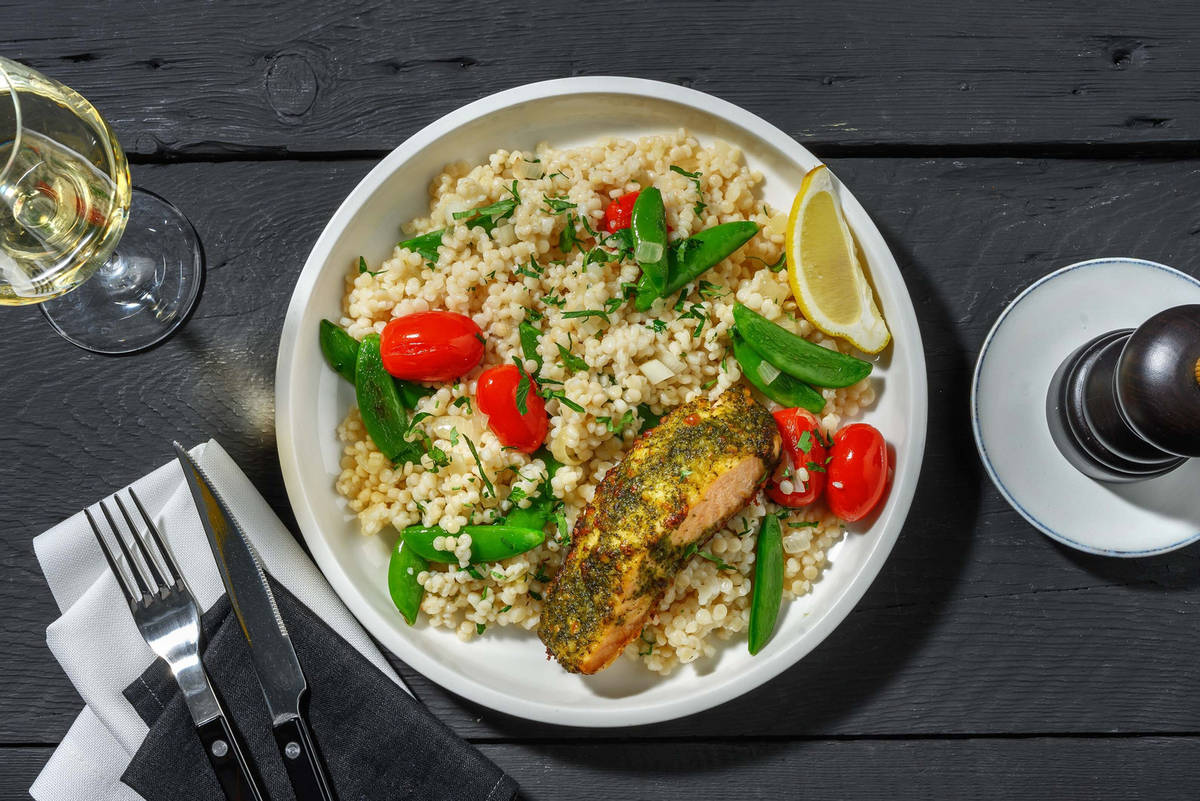 Du saumon juteux rôti au four garni d’un pesto crémeux et servi sur un lit de couscous moelleux aux fines herbes. Un repas parfait pour un souper de semaine rapide ou pour un pique-nique. Tous en raffoleront!