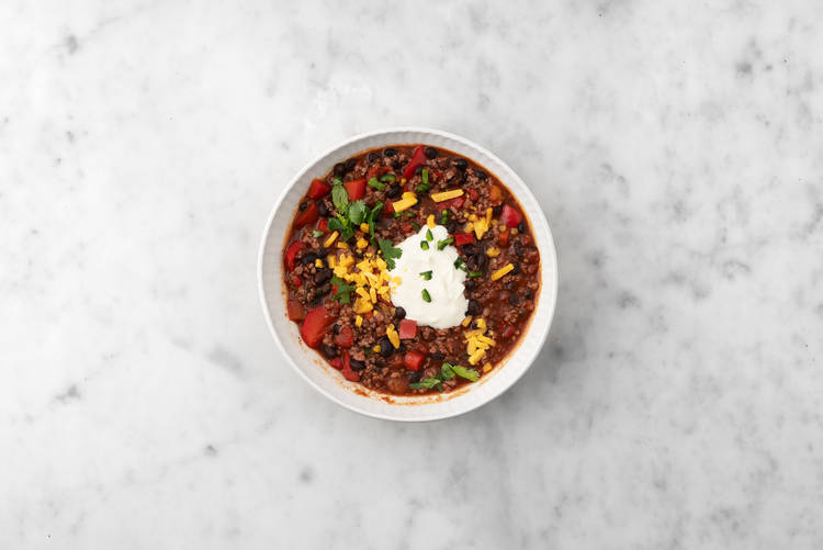 This light beef and bean chili hits the spot. We added spicy jalapeños and melty cheddar cheese for extra deliciousness!
