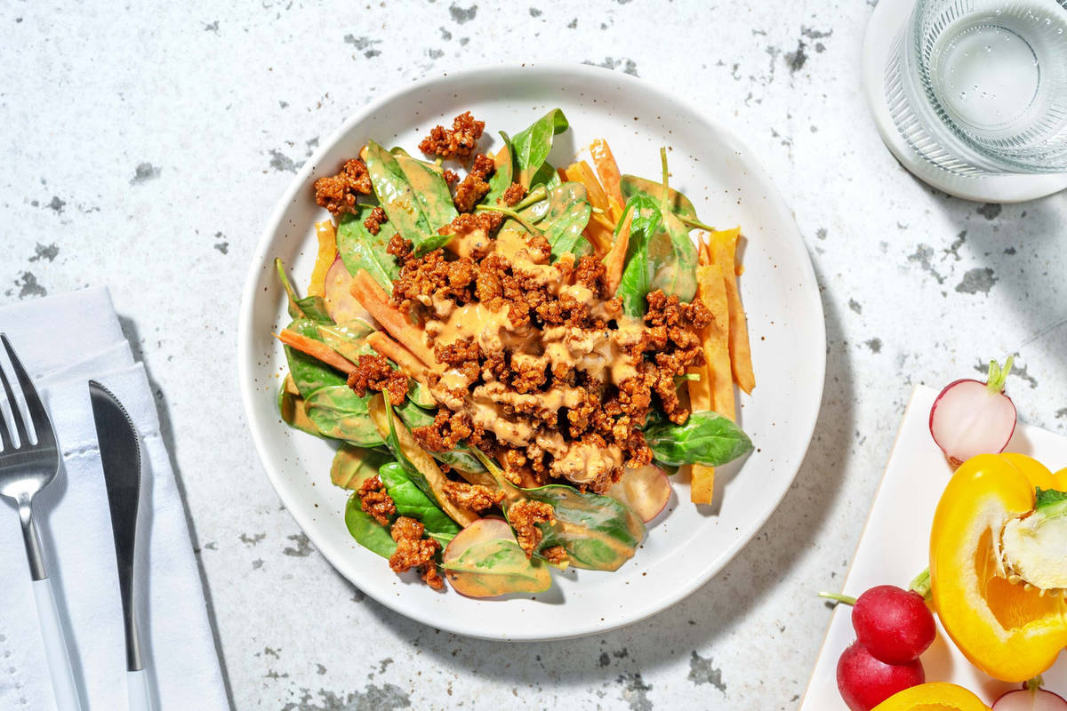 This bountiful salad is bursting with colour, Korean-inspired flavours and wholesome veggies! Spicy soy turkey and a creamy, gochujang-based dressing round out the plate for a delicious, light way to start your week! Smart is based on a per serving calculation of the recipe's kilocalorie and carbohydrate amount.