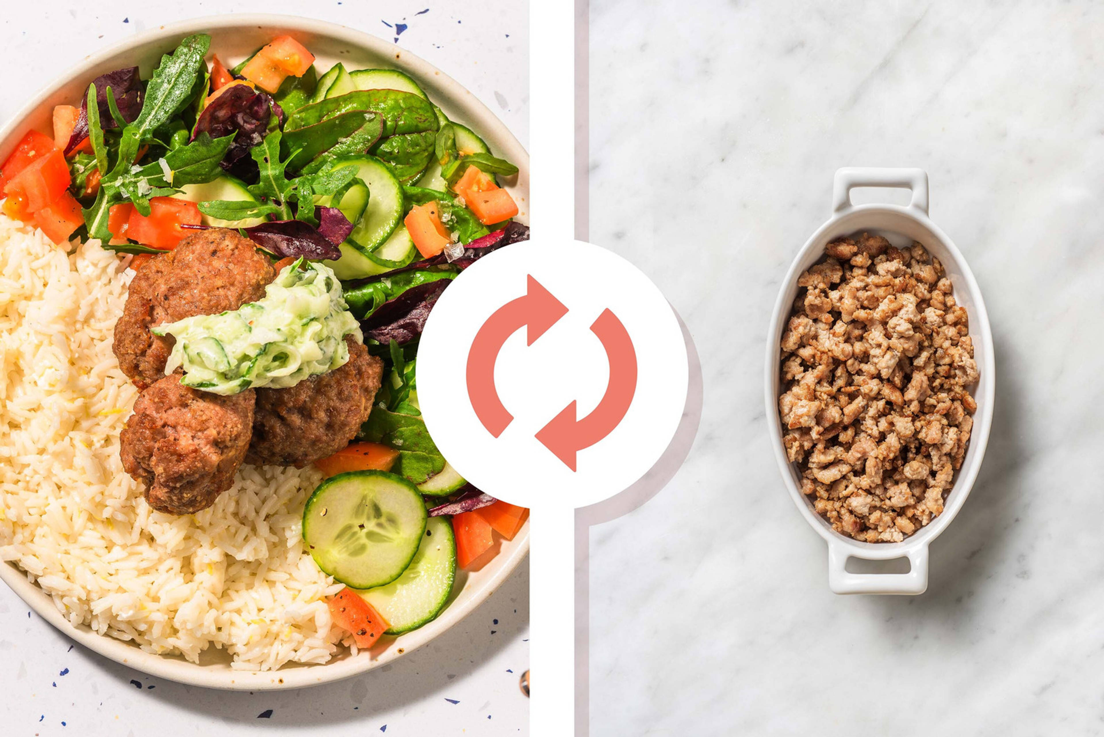 • Répartir le riz, le porc et les légumes dans les assiettes.