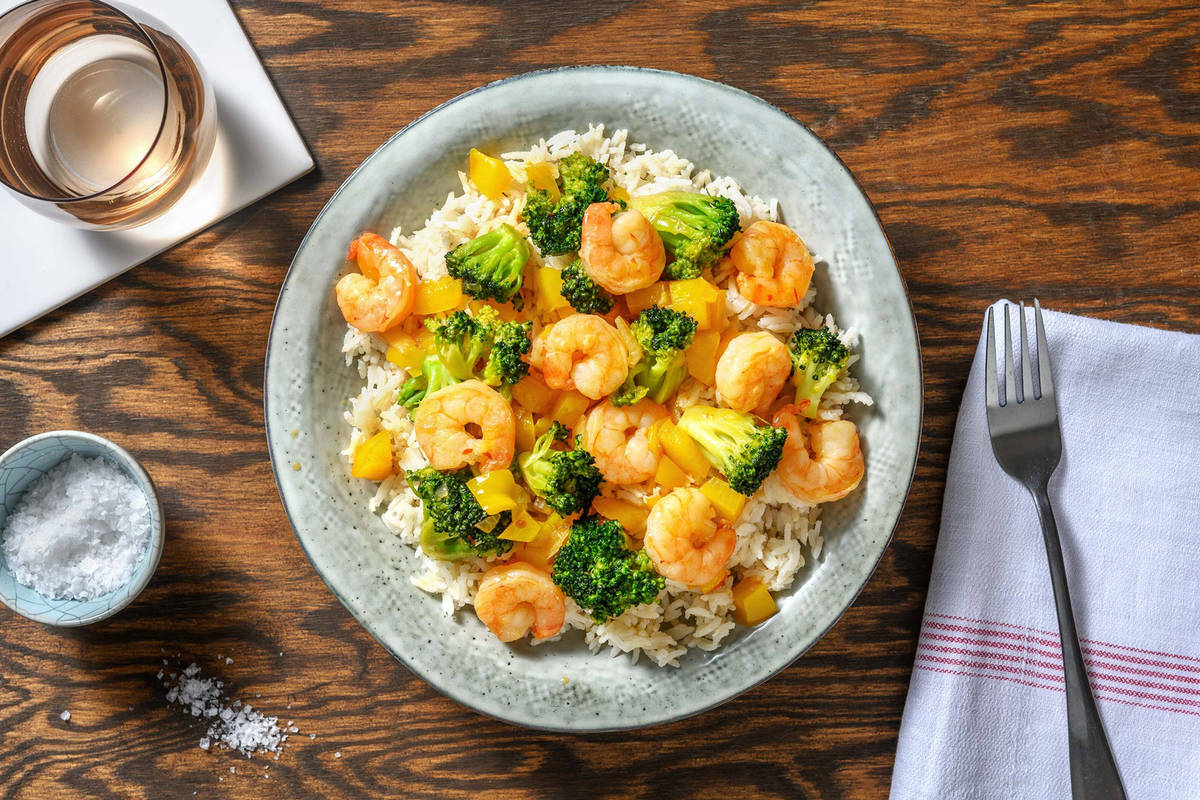 Succulent shrimp get a quick toss in a sweet soy chili sauce with the alluring aroma of sesame oil. Tender-crisp broccoli and sweet bell pepper give the perfect crunch to this snappy dish. You will not miss take-out with this one!