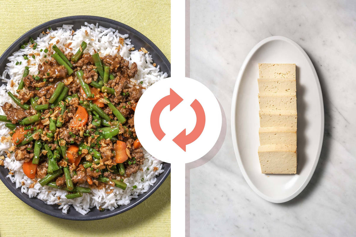 Voici le plat à emporter canadien-chinois le plus populaire! Vous le préparerez chez vous en suivant quelques étapes simples et sans faire de compromis sur la saveur. Le tofu est cuit dans une sauce sucrée et salée, puis vous le parsèmerez d’échalotes frites croustillantes!