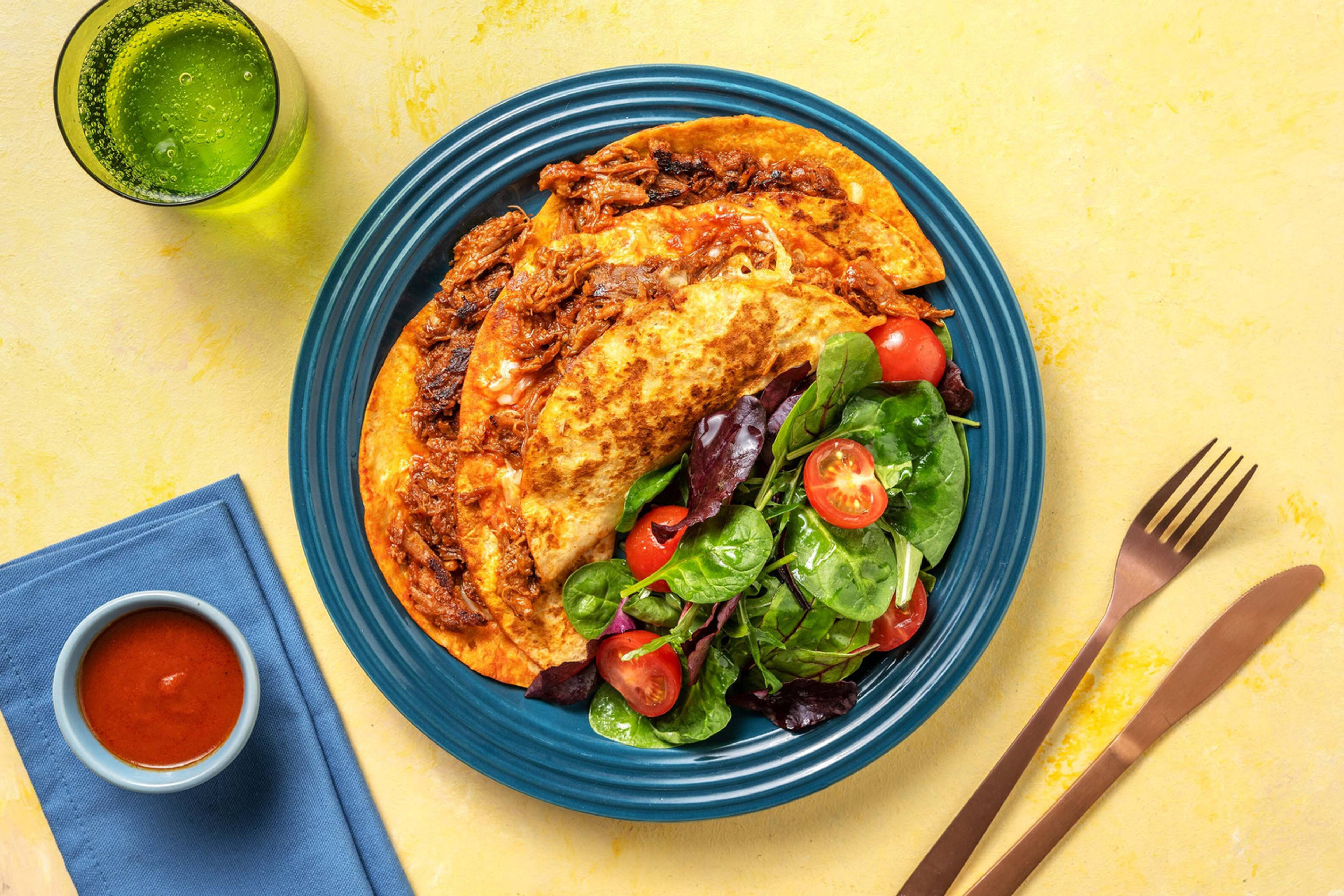 • Envelopper les tortillas dans du papier d’aluminium et les chauffer dans le haut du four de 4 à 5 min. (CONSEIL : Cette étape est facultative.)